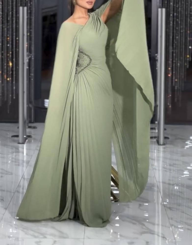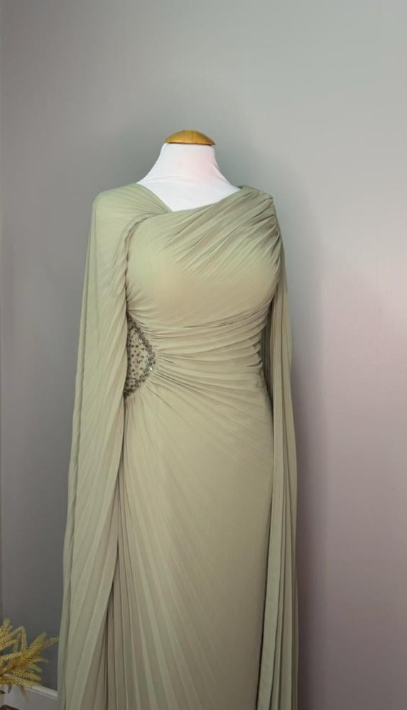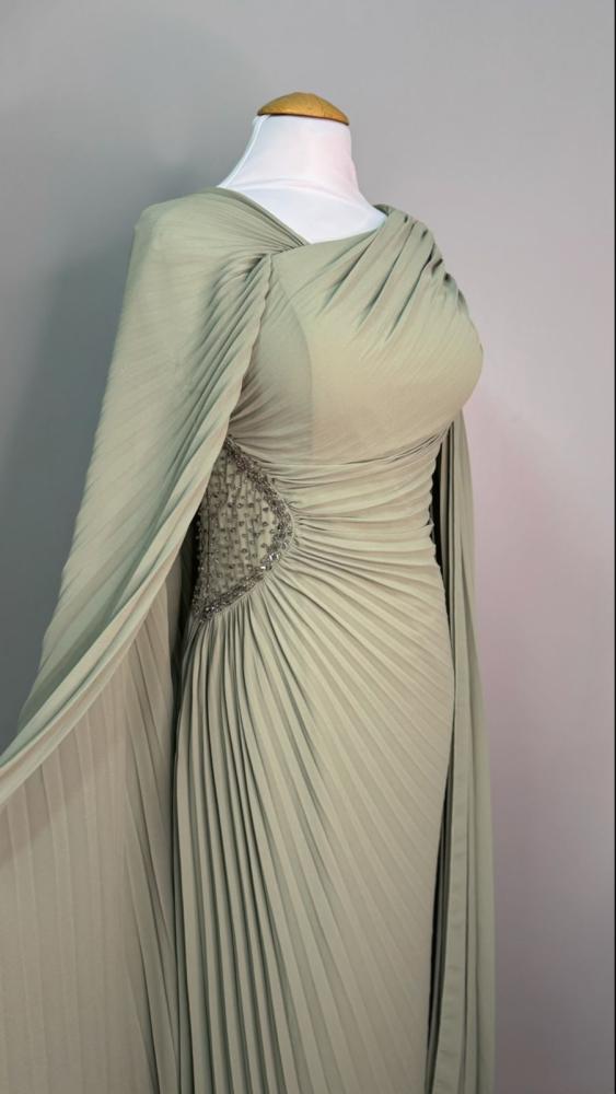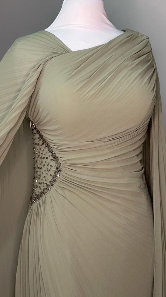 يتميز هذا الفستان بتفاصيله الفريدة التي تجعله قطعة مميزة في اي مناسبة.الطيات المتموجة تضفي انسيابية على التصميم.بينما تطريزات الكريستال عند الخصر تضيف...