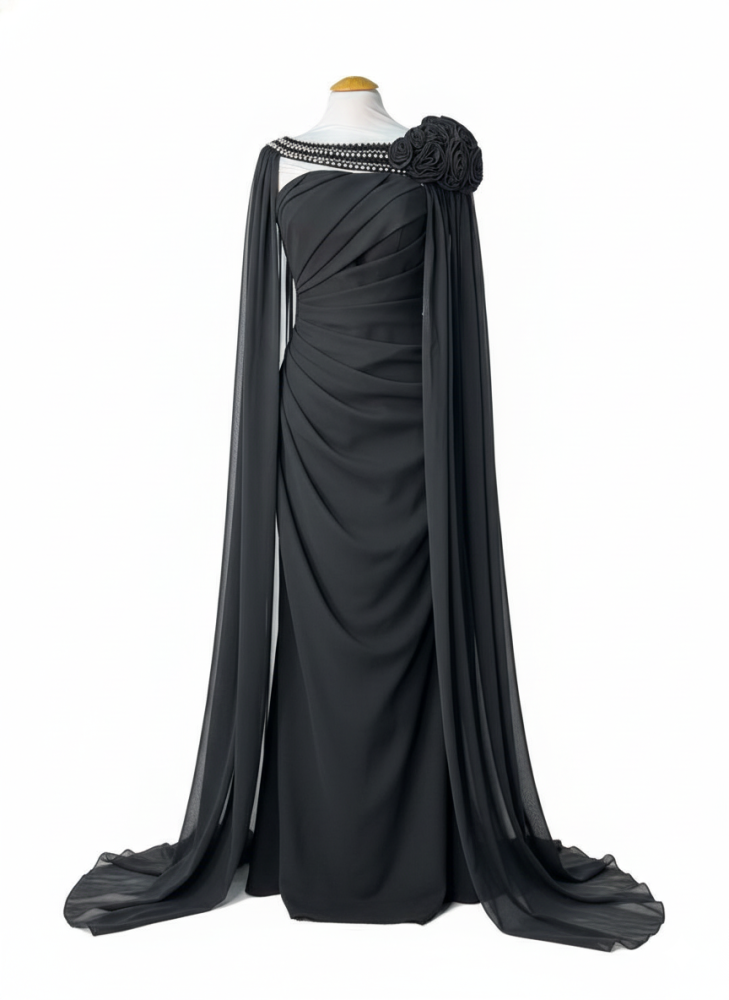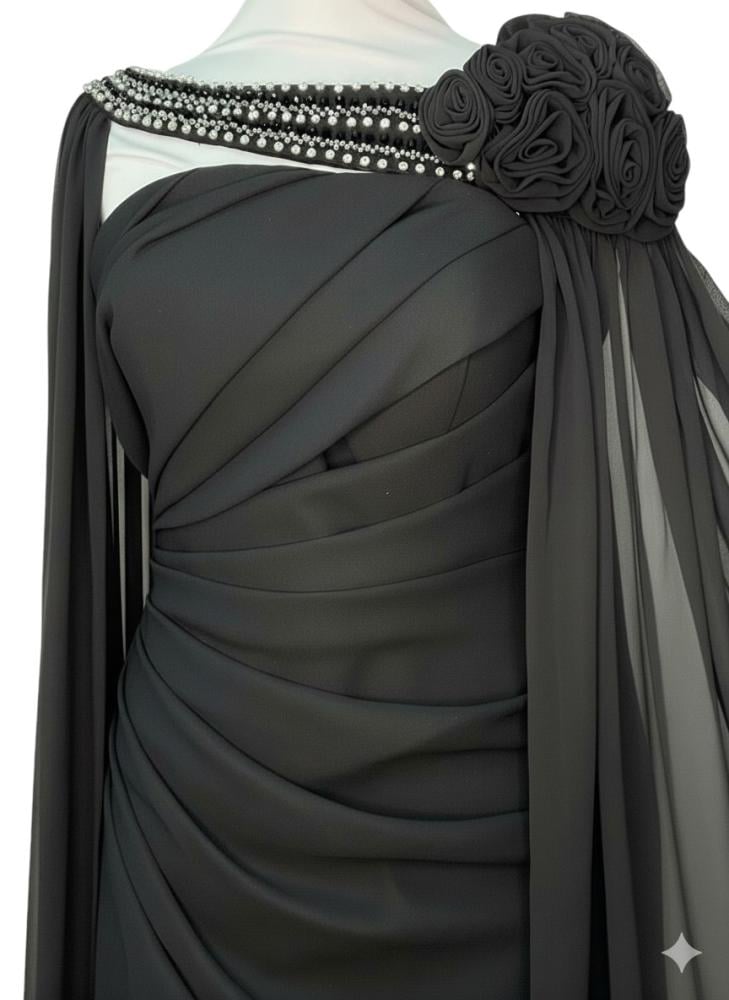 تألقي بإطلالة تخطف الأنظار مع فستان سهرة أسود يجمع بين الأناقة الكلاسيكية واللمسات العصرية الفريدة. تصميمه الفاخر يجسد مزيجًا مثاليًا من الراحة والجمال، مما يجعله من أجمل فساتين حفلات اسود التي تمنحك حضورًا مميزًا في كل مناسبة. الطيات الدقيقة والتفاصيل الزهرية ثلاثية الأبعاد تضيفان بعدًا فنيًا يعكس ذوقًا راقيًا وأنوثة لا تُقاوم.